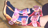 Auch die Gehhilfen, «Unterschenkel-Orthesen», die seine Füsse in den richtigen Winkel bringen (er hat die Tendenz, seine Füsse gerade auszustrecken) haben ihm therapeutisch sehr viel gebracht. Hier gilt es unter anderem auch zu verhindern, dass sich seine Muskeln «verkürzen» und er auch den Halt im unteren Beinbereich erhält, den er benötigt um verschiedene Übungen in der Physiotherapie zielorientiert und richtig durchzuführen. Seine ersten «Schienen» erhielt er mit 2 Jahren und 9 Monaten. Auch hier ist erstaunlich, mit welcher Geduld er warten kann, bis die Schienen angezogen sind. Wir denken, dass auch er merkt, dass dieses Hilfsmittel zu seinem Besten ist. | |||