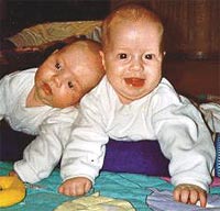 Bruder Lucien. Anfangs bemerkten wir noch nicht viel von seiner Behinderung. Nach einiger Zeit wurden wir auf sein spezielles Verhalten aufmerksam, wurden doch sehr auffällige Verhaltensmuster sichtbar (Verkrampfung des Körpers oder etwa das extrem bananenförmige Durchdrücken des Rückens). Wir teilten diese Beobachtung unserem Kinderarzt mit, der uns empfahl, weitere Abklärungen im Spital machen zu lassen. Gilles musste einige Untersuchungen über sich ergehen lassen, die uns oft mehr weh taten als dem kleinen Kerl selbst. Blut wurde untersucht, Tomografien wurden erstellt, der ganze Knabe wurde professionell und gründlich untersucht. Gilles war (und ist auch heute noch) ein tapferer Junge, der diese Prozeduren gelassen meisterte. |